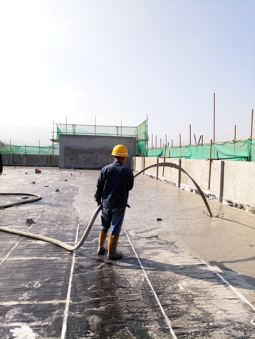 5、根据施工的坡度设计要求,专业操作人员对浇注的泡沫混凝土表面进行抹平(用光滑的抹平直尺)。因抹平后,泡沫混凝土表面会有少量的孔隙产生,会对在其表面进行防水施工造成影响,建议建设方在浇注的泡沫混凝土整体终凝至70%时,使用水泥砂浆找平和保护。